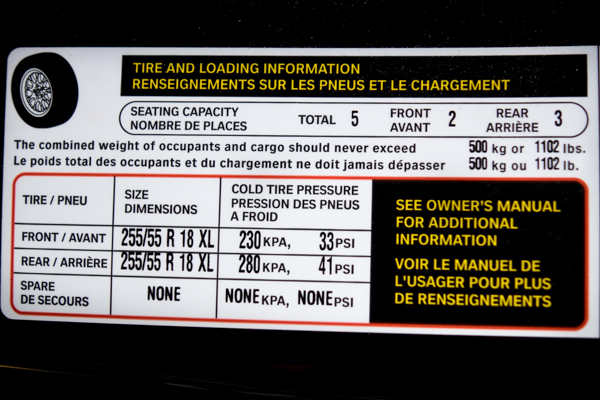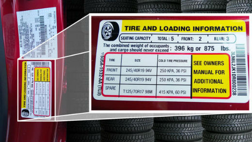 You can quickly find tire and loading information sticker on inside frame of driver side door. This information can be also found on vehicle manual which is usually kept inside your glove box. On some vehicles this sticker can also be found inside fuel tank hatch door. Usually this informations include different tyre size specifications, load specifications and recommended inflation pressure details.