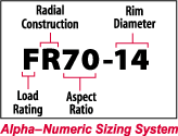 On the other hand, a low profile tire usually has a stiffer ride than a standard tire with an aspect ratio of 75 or more. So the general rule is that the higher the aspect ratio, the more comfortable the ride, and the lower the aspect ratio, the better the handling. It is up to the individual driver to decide which tire characteristic is desired. Now let’s look at the various sizing conventions used over the years.